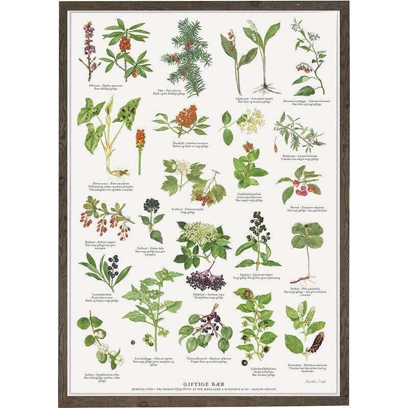 Indtagelse af giftige bær er den mest hyppige årsag til forgiftning for småbørn. I samarbejde med Per Mølgaard og Giftlinjen er denne plakat med giftige bær blevet til. Plakaten giver et overblik, der hurtigt kan give svar på, hvad dit barn kan have indtaget og hvor giftige bærerne er. De mest almindelige og giftige bær er med på plakaten.