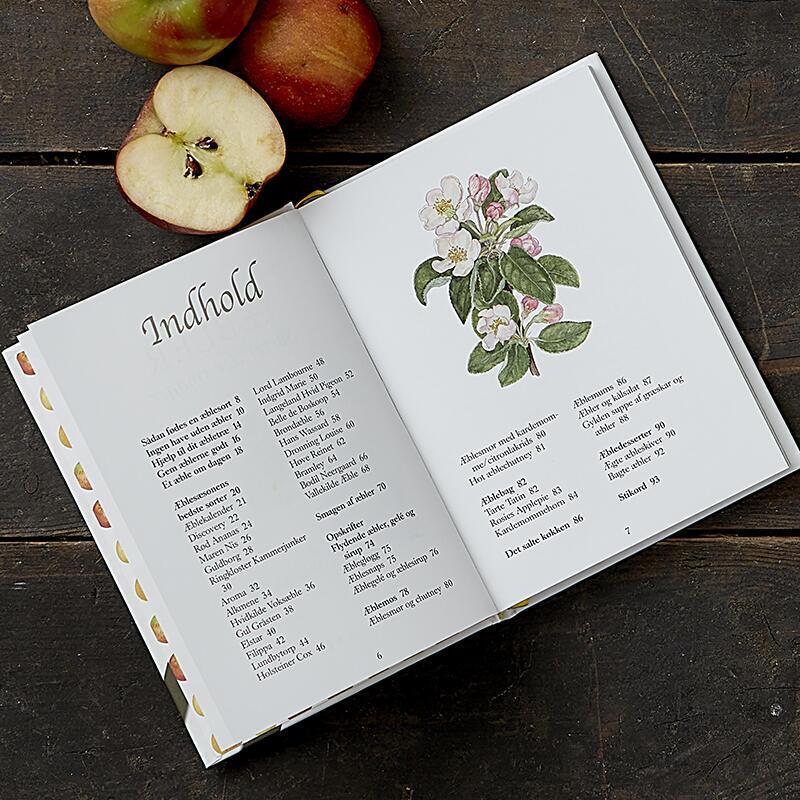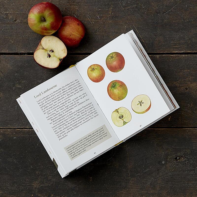 I bogen kan du læse om 24 velsmagende æblesorter, hjemmedyrkede æbler fra august til maj og finde lækre opskrifter med æbler i mange afskygninger.