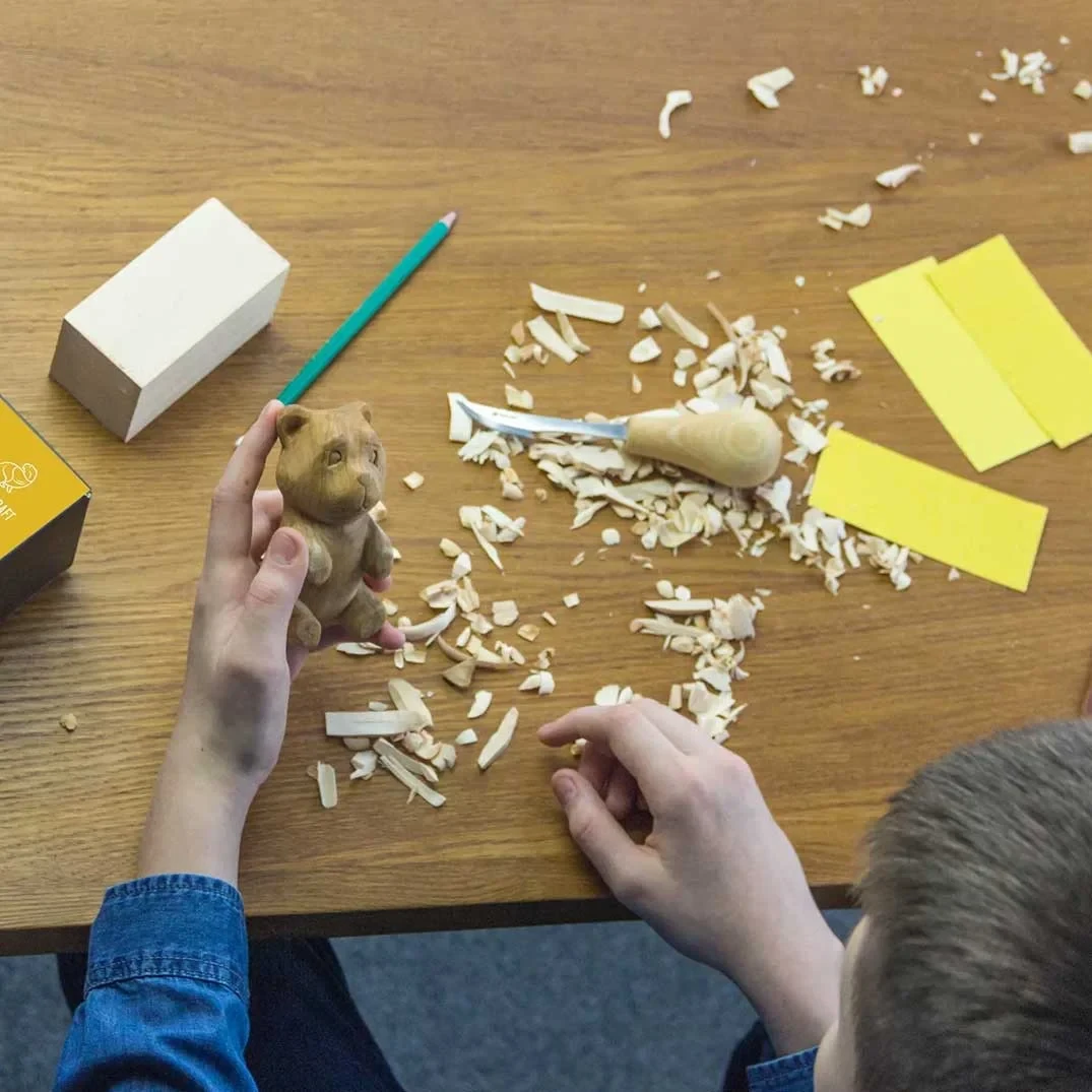 Dette BeaverCraft hobbysæt giver dig mulighed for at snitte en lille bamse bjørn.