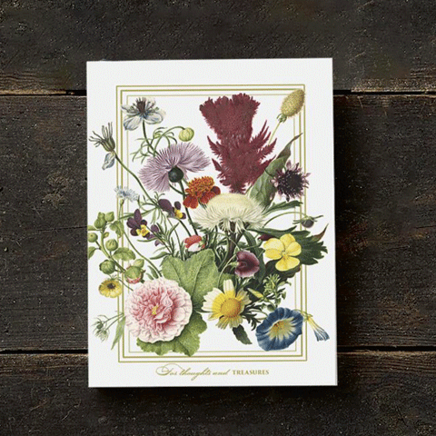 Notesbogen er en sand fryd for øjet og kan bruges til mange formål. For- og bagsats er med flot blomstermotiv og siderne er blanke, så det er muligt både at skrive og tegne i bogen. Bogen er med sider af genbrugspapir og med guldfolietryk på forsiden.