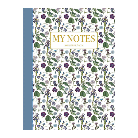 Smuk noteshæfte med blomstermotiver på forsiden.