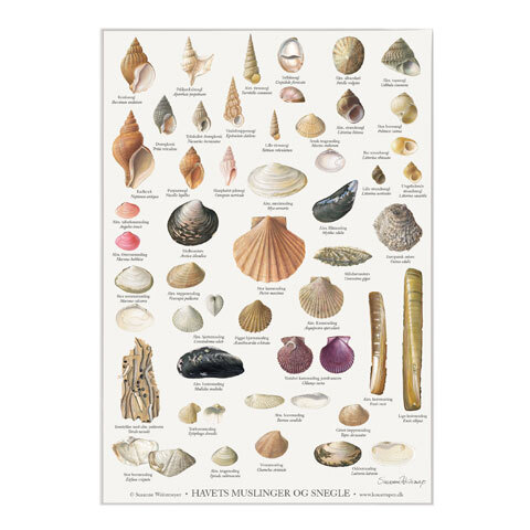 Der findes mange finurlige skaller af muslinger og snegle på stranden. De hører begge til gruppen af bløddyr og spiller en vigtig rolle som naturens skraldemænd fordi muslinger og snegle fra havet renser store mængder af havvand for plankton. Muslinger kan kendes på deres sammentrykte krop og den todelte skal, som er hæftet sammen langs rygsiden.