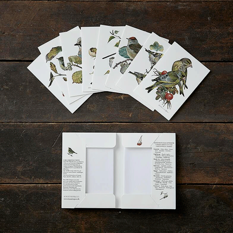 Kvalitetskort med motiver af havens fugle efterår illustreret af Carl Christian Tofte.