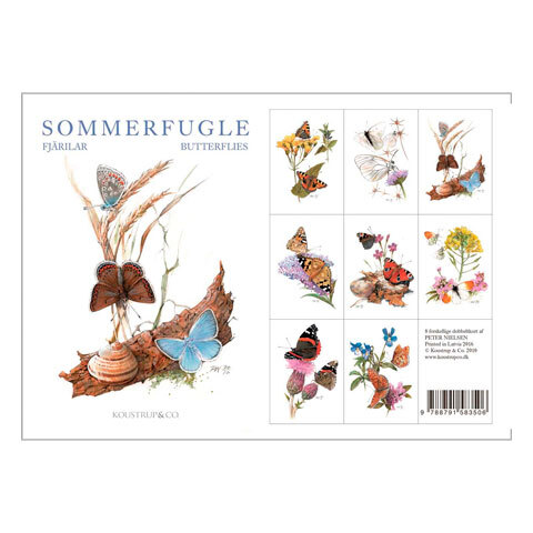Kvalitetskort med motiver af sommerfugle illustreret af Peter Nielsen.
