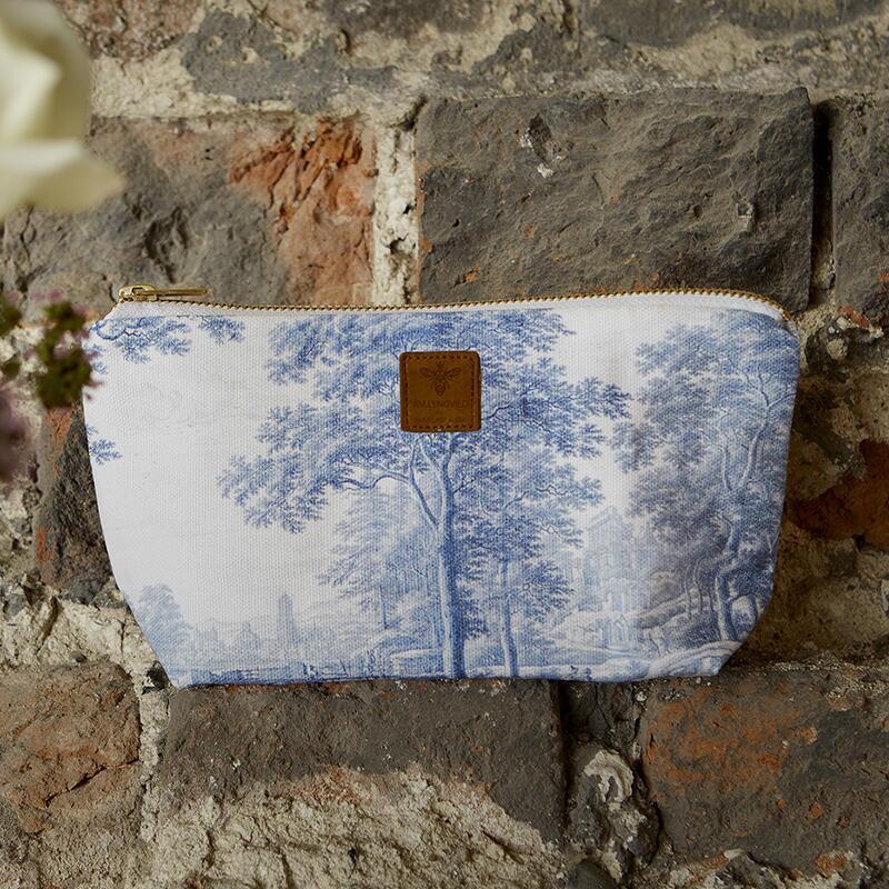 Tasken er med landskabsmotiv fra hollandske 1700-tals kakler.