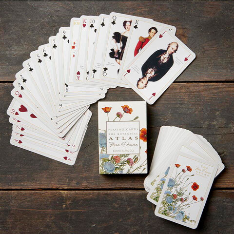 Klar til en hyggelig omgang kortspil med familie eller venner? Det skønne kortspil har de smukkeste motiver fra det botaniske værk Flora Danica på bagsiden af kortene. Billedkortene er prydet med fine konger og dronninger fra den periode, hvor værket Flora Danica blev skabt. Kortene er fremstillet af miljøcertificeret FSC papir. 55 kort i en æske