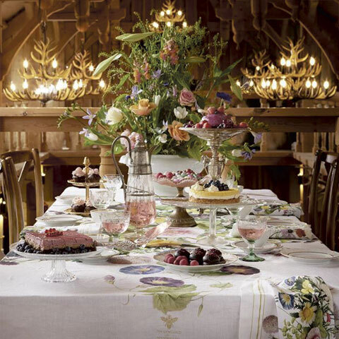 Dæk et smukt bord med en frodig og farverig blomstrende have som baggrund. Produktet er blødt, eksklusiv og i stone washed hør.
