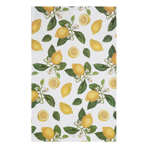 Dette økologiske, smukt dekorerede viskestykke er prydet med fine citronillustrationer, der tilføjer et frisk middelhavs stemning til dit køkken.